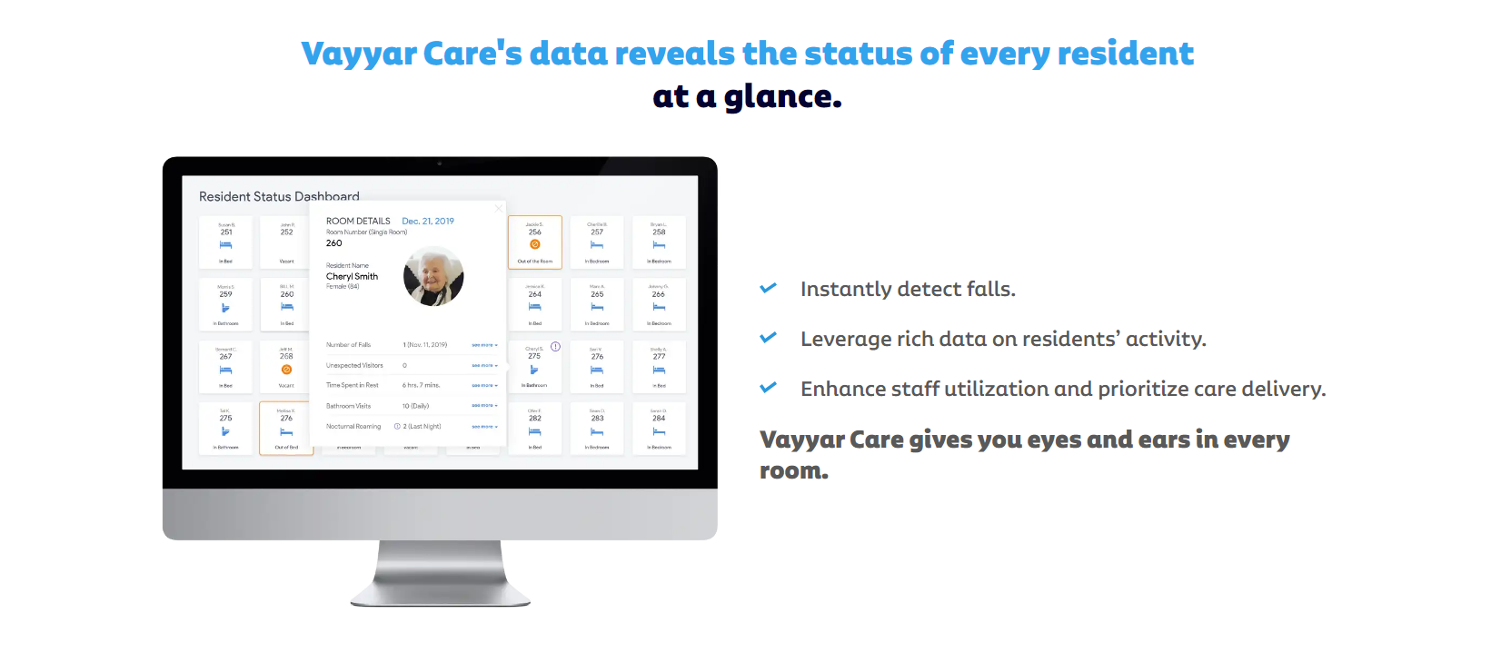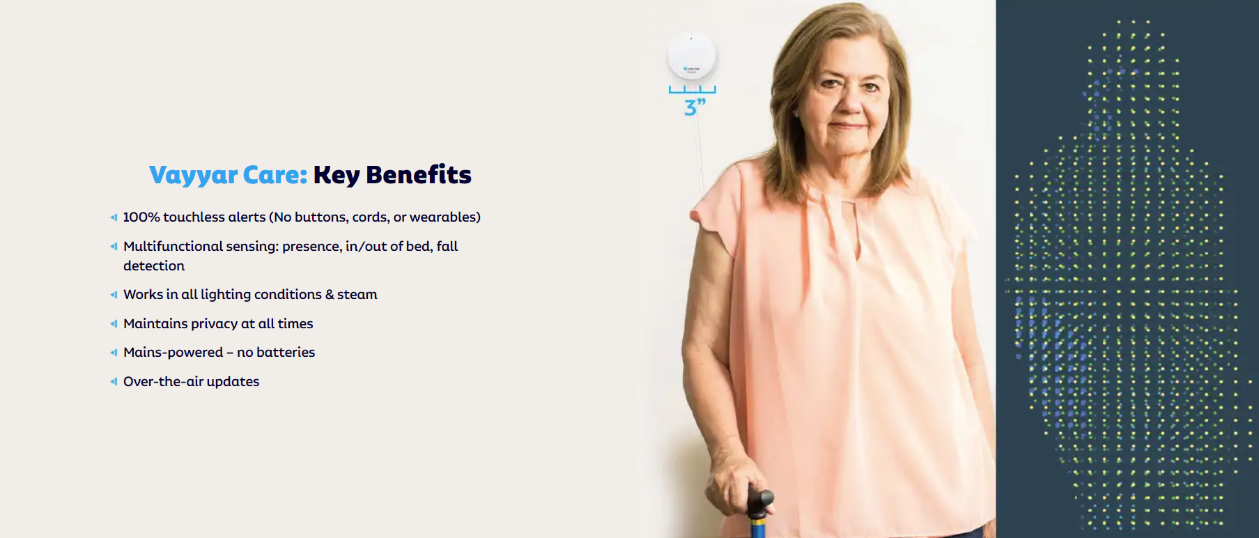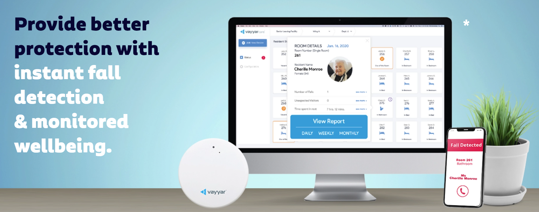 An automated wireless sensor by Vayyar Care to detect falls 24/7.